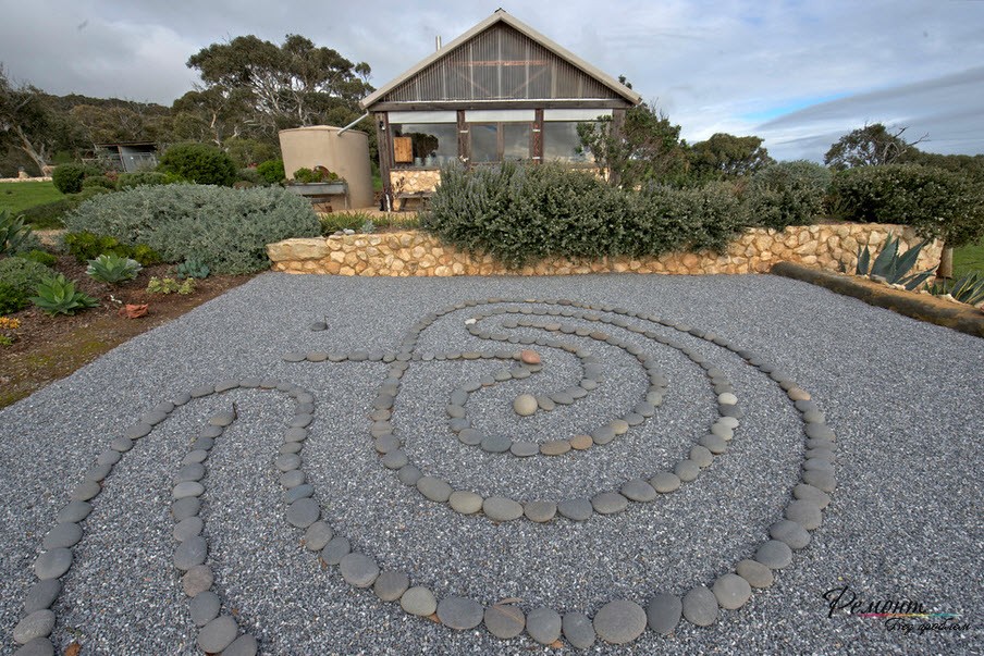 Традиционный сад камней – это ровная площадка, засыпанная песком или мелкой галькой. Главный элемент этой площадки составляют хаотично расположенные неотесанные камни. На самом деле хаотичность только кажущаяся: композиция из камней подчинена строгим правилам философии дзен-буддизма – одной из японских религий. Вся инсталляция состоит из отдельных групп, вмещающих по три камня, общее количество камней – 15. Классическое устройство японского сада в том, что в какой бы точке ни находился посетитель, его взору всегда будет открываться только 14 камней. В настоящее время участок, украшенный камнями, может весьма условно и отдаленно напоминать подлинный сад камней, в таком случае важно не нарушать гармонию единства экстерьера и интерьера дома: