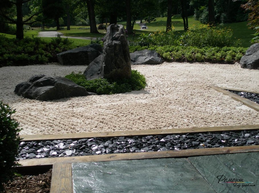 В современной ландшафтном дизайне сад камней очень популярен, хотя древние японские традиции не соблюдаются с исторической точностью. Однако такой стиль оформления имеет определенные правила: все камни обязательно должны быть разного размера и расположены ассиметрично: