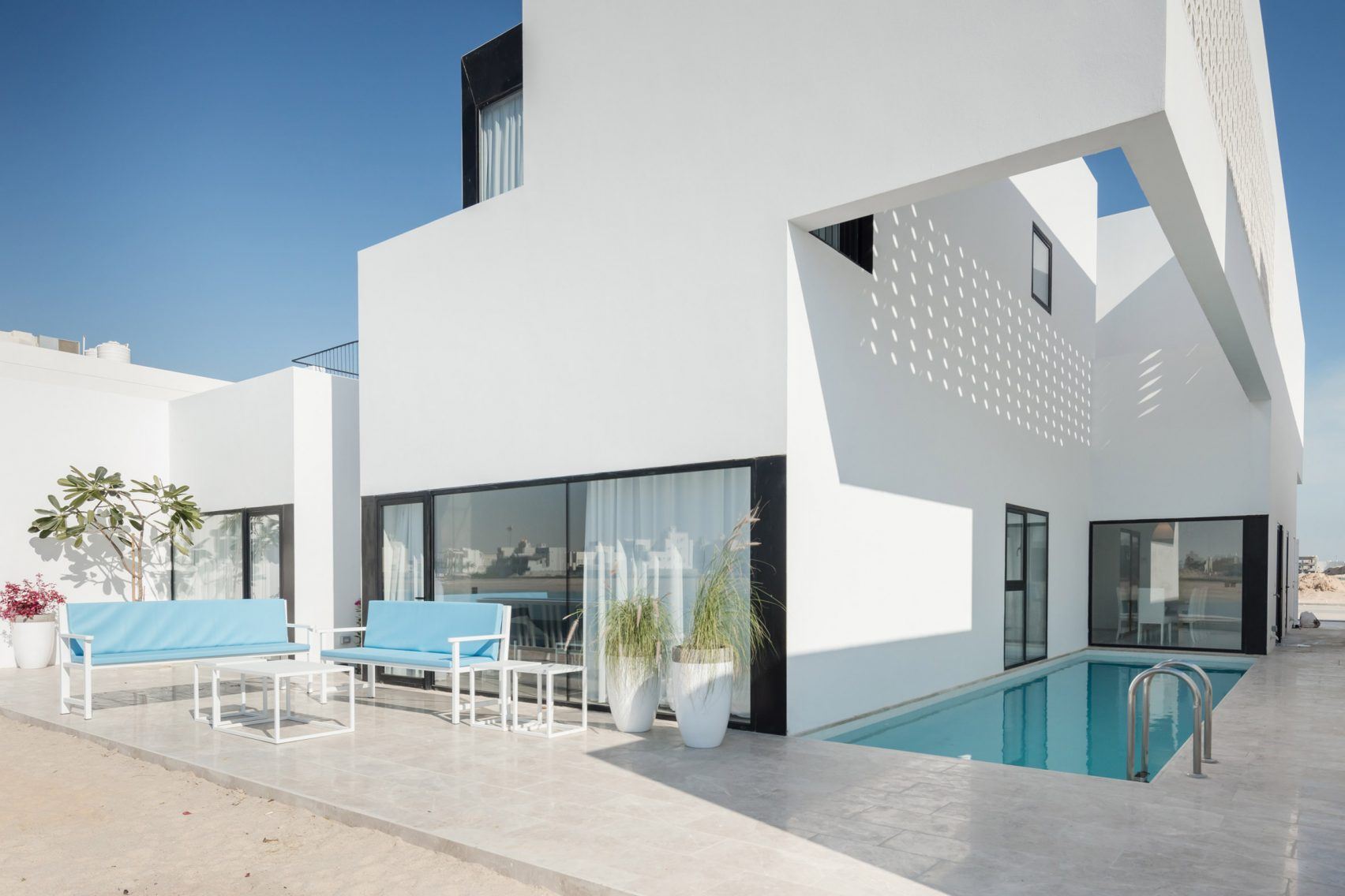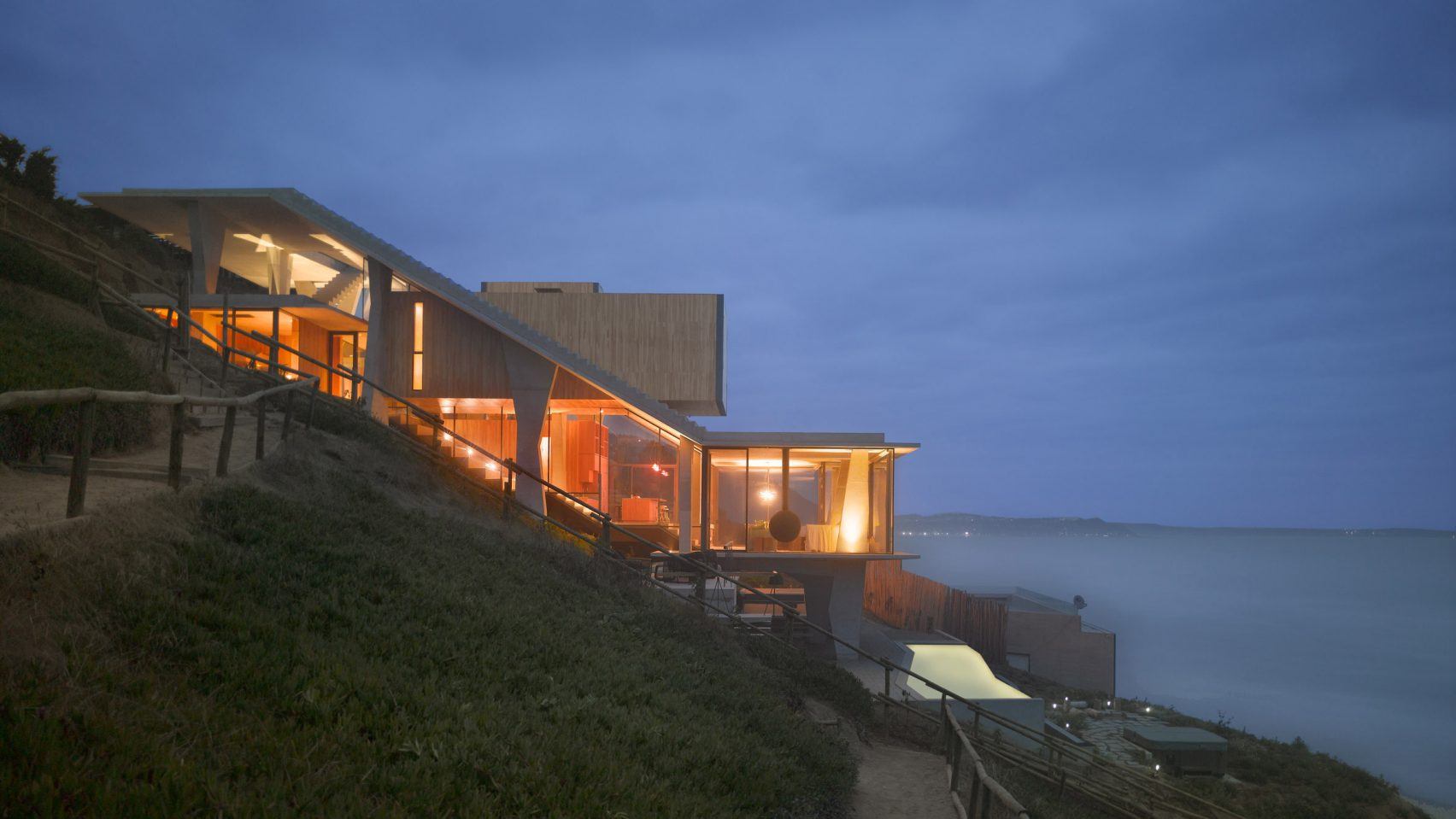 Архитекторам этого дома понадобился целый год, чтобы сделать проект и просчитать все нюансы, а чтобы построить, хватило 7 дней. Самый эффектный элемент дома – вытянутый бассейн, парящий в воздухе.
