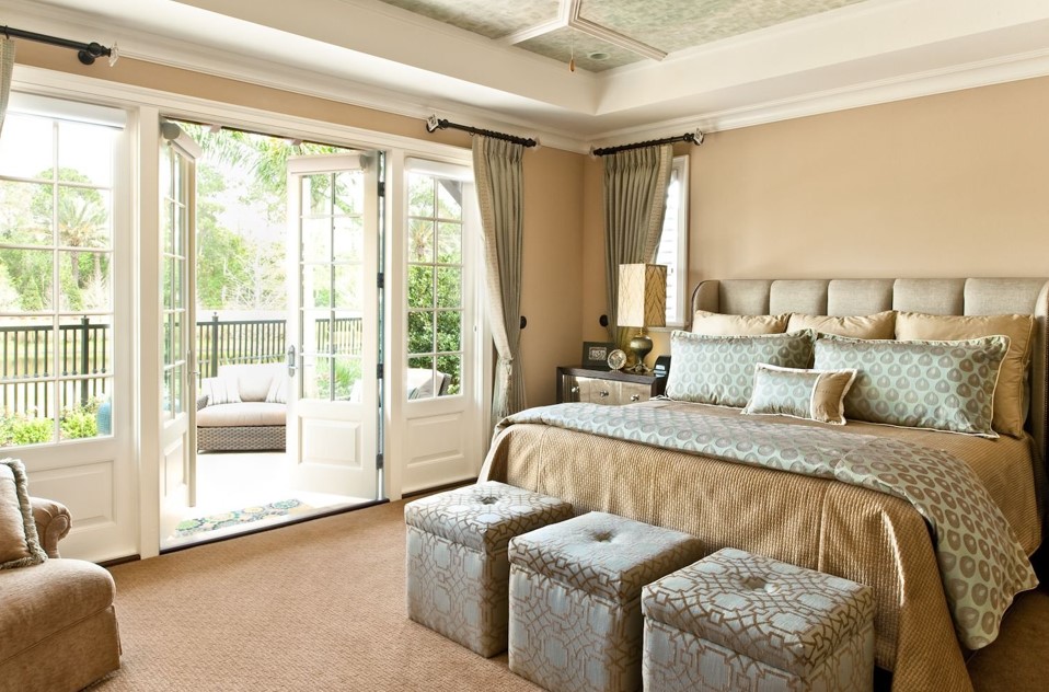 Для отделочных материалов, текстиля и декора в такую спальню выбирают все более сдержанных цветов и оттенков. Классика оформления спальни продумана до мелочей дизайнером интерьеров Келли Аллен. Она также советует учитывать современные модные тенденции, а именно: