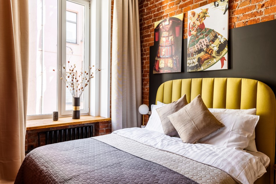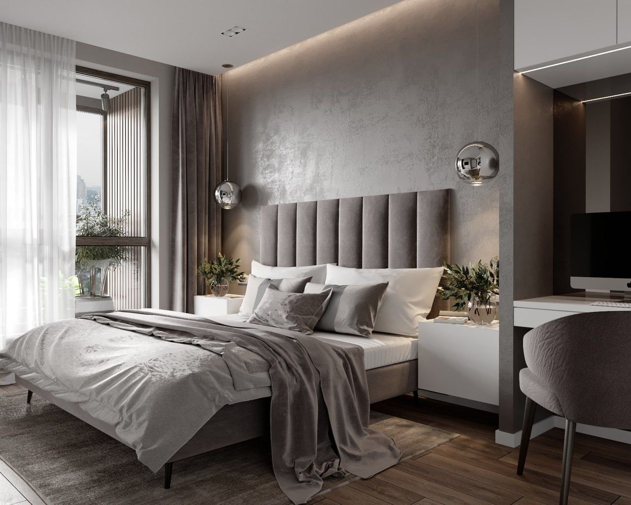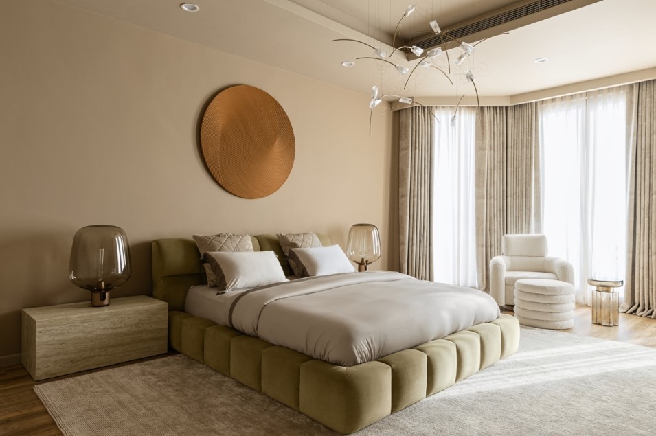 - Дизайнерская спальня с выходом на балкон