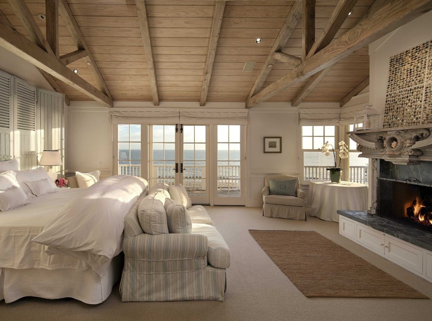 Предусмотрена в такой спальне и гардеробная. Если площадь позволяет, можно ее сделать отдельной нишей. А если есть выход на ванную, можно удачно совместить санузел, и гардеробную. Данный дизайн разработан дизайнером Эрин Уильямсон. Она в своей идее морской спальни совместила смелое сочетание рисунка и цвета, чтобы оформить красивую спальню в морском цвете.