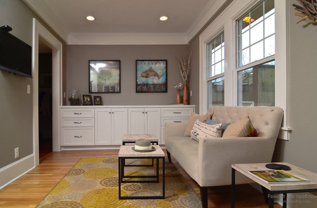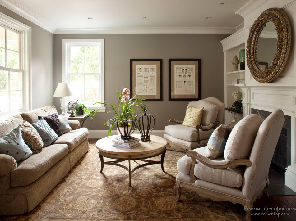 Эффектное сочетание получается, если использовать прохладный серый цвет с теплым бежевым. Они вместе создают чудесный фон для других, как холодных, так и горячих красок.