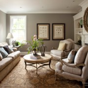 В классике серую гостиную можно встретить значительно реже, правда, в старинных стилях серый цвет в гостиной просто великолепен. Для оформления интерьера данный оттенок в большинстве случаев применяется в качестве основного фона (стены, пол). Необыкновенно эффектное сочетание получается, если использовать темный графитовый тон для отделки пола и светлый жемчужный для отделки стен. Обычно данное сочетание применяется в среднеземноморском улитарном стиле с добавлением дополнительных оттенков: белого и коричневого. Однако, для такого интерьера обязательно необходима хорошая освещенность помещения, т.е. окна гостиной должны выходить на южную сторону.