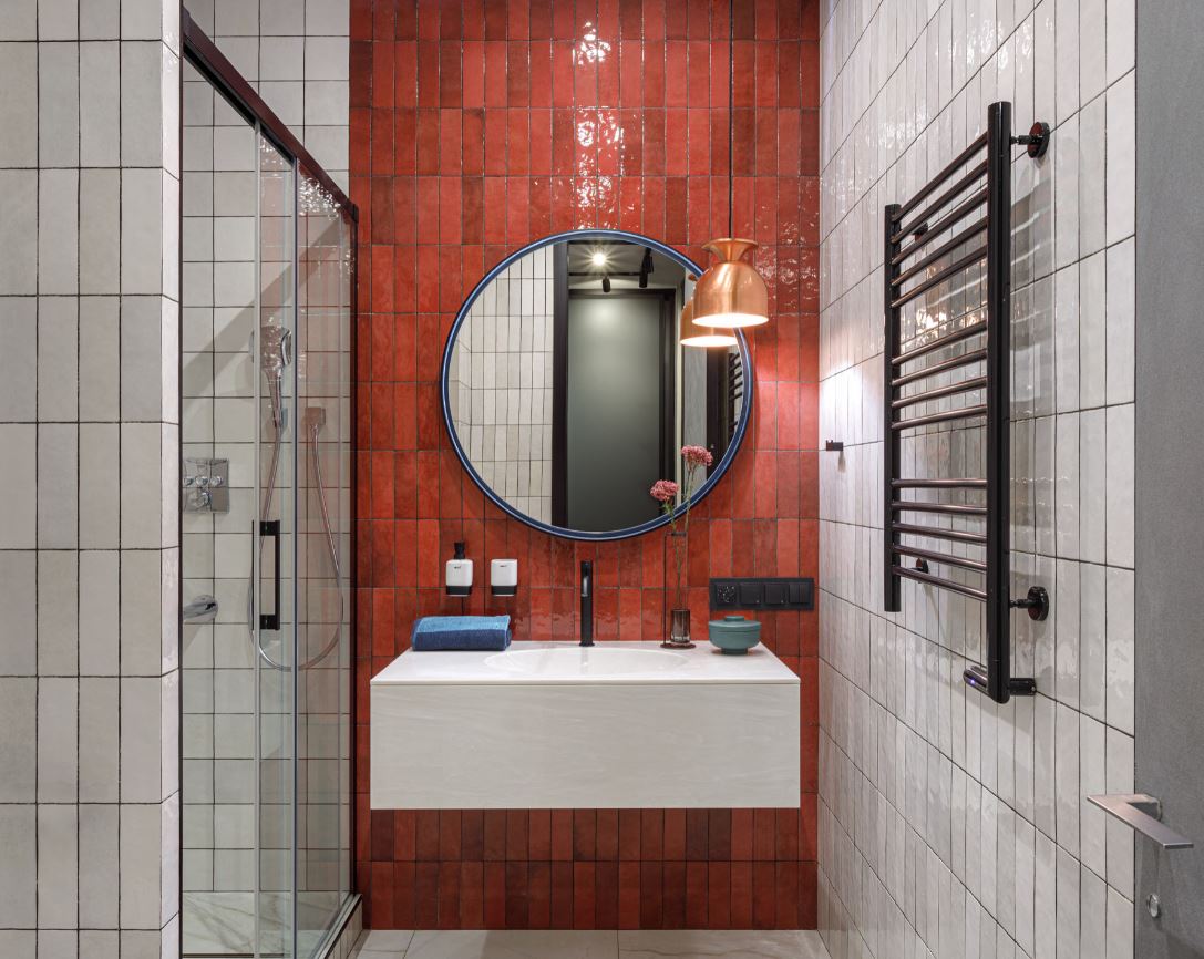 Серо-красная ванная