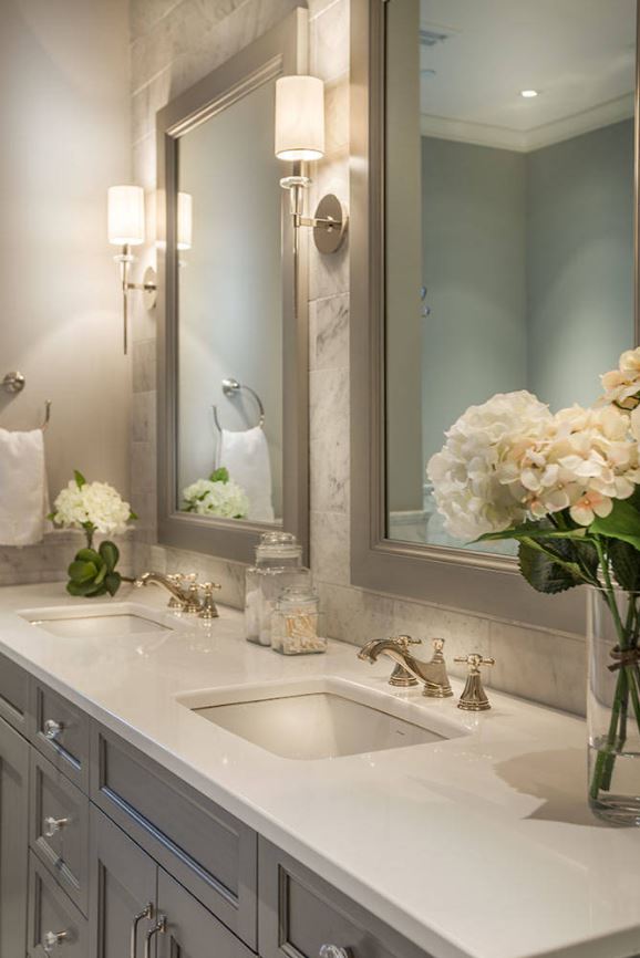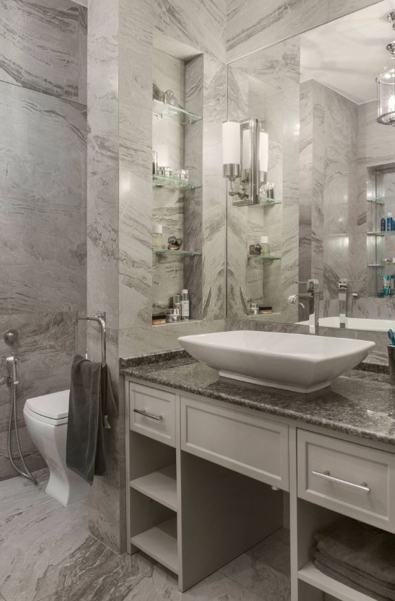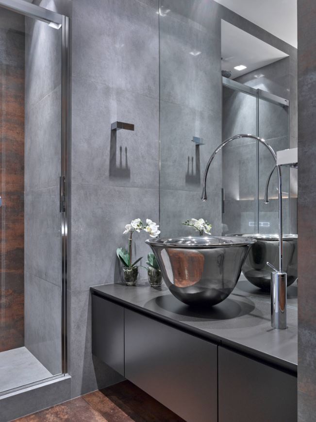 Хотите стильный дизайн ванной? Сочетайте серый и серебристый цвет. Любители стиля элегантности будут в восторге от такого интерьера ванной.