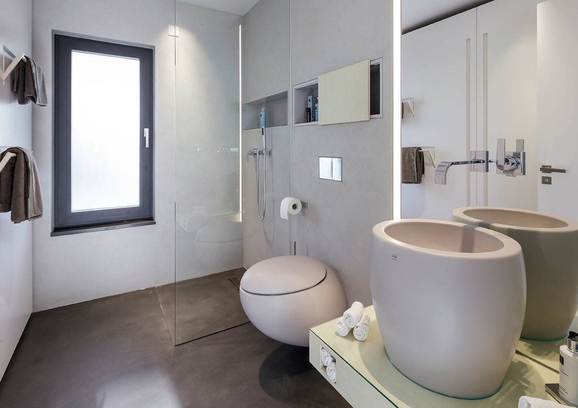 Серый цвет элегантен. Он неподвластен времени. Именно благодаря серому ванная комната приобретает необычный шарм. Этот оттенок идеально подходит для минималистичных и промышленных интерьеров.