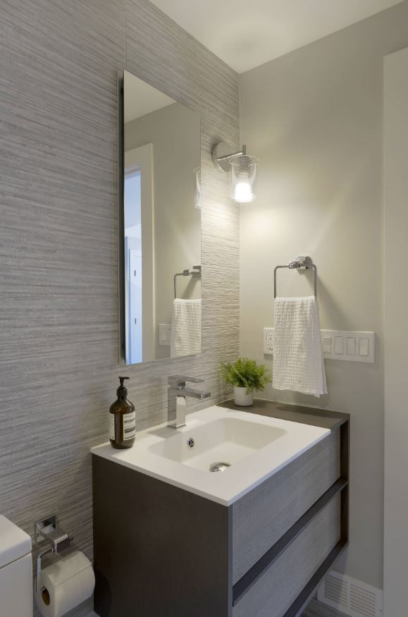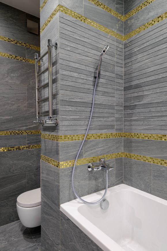 Ванную комнату можно дополнить серыми аксессуарами. Хромированные вешалки, фурнитура, полотенца – это важное оформление ванной. С помощью таких деталей вы добьетесь полного изменения интерьера.