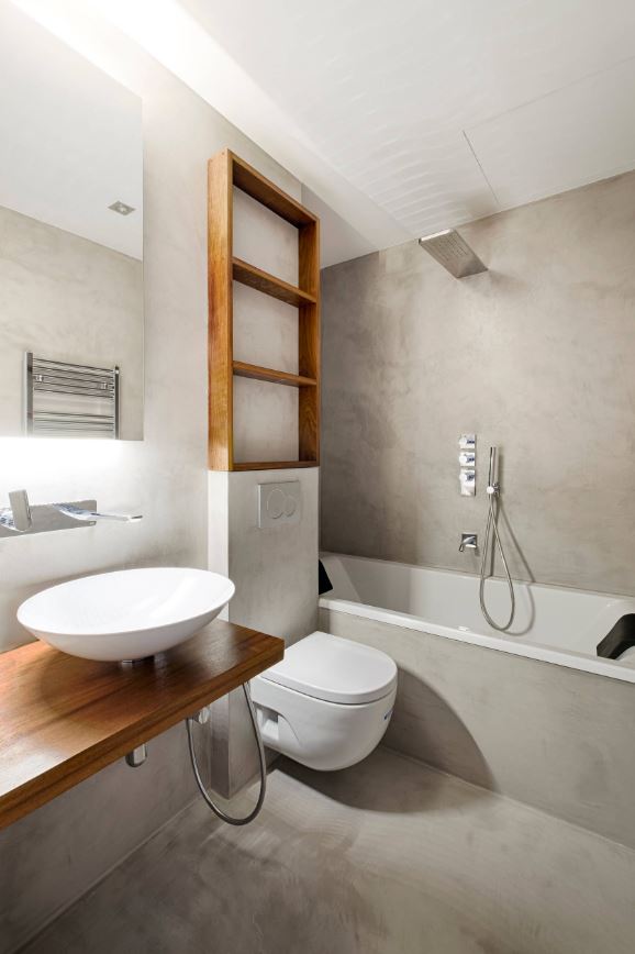 Для отделки стен в ванной комнате очень часто выбирают бетон, который является отличным носителем серого в интерьере. Этот материал придает дизайну шарм, потому что хорошо комбинируется с глубокой текстурой.