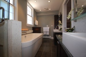 Администратор2014-07-08 18:04:452014-07-08 18:04:45Темная квадратная большая плитка под мрамор - идеальное напольное покрытие для серой ванной комнаты