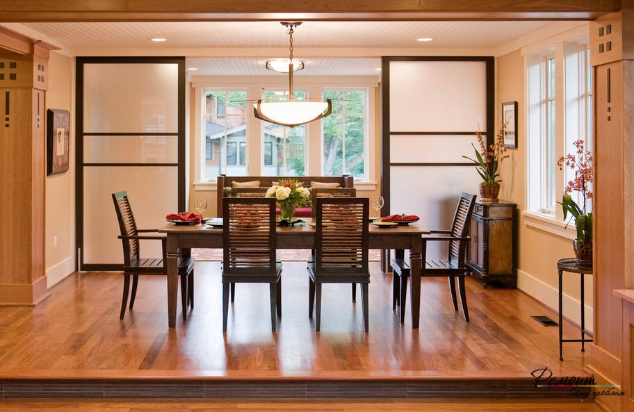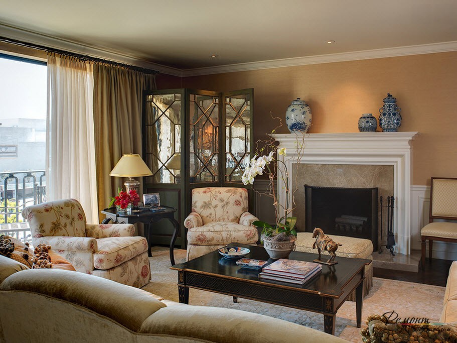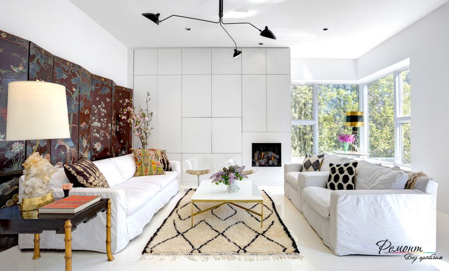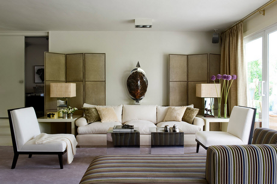 Гостиная это особая комната в каждом доме, как правило, ее делают самой нарядной в доме и именно здесь ширма может быть как нельзя кстати. Если размер квартиры позволяет использовать гостиную в полном объеме, не обустраивая в ней ни дополнительно спальное место и не кабинет, как зачастую это бывает в маленькой городской квартирке, то ширму можно использовать исключительно как декоративный элемент. К примеру ,ее можно разместить вдоль стены, у которой стоит диван или закрыть ею один из свободных углов, сделав его основным украшением комнаты.