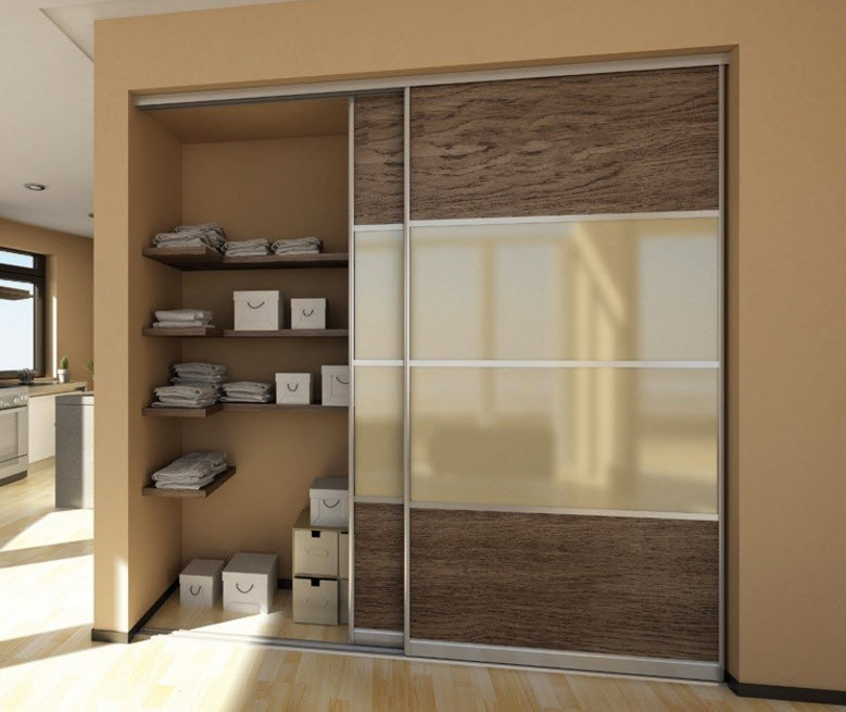 - с помощью встроенного шкафа-купе можно визуального менять параметры помещения – «вытягивать» его в высоту, ширину или длину;