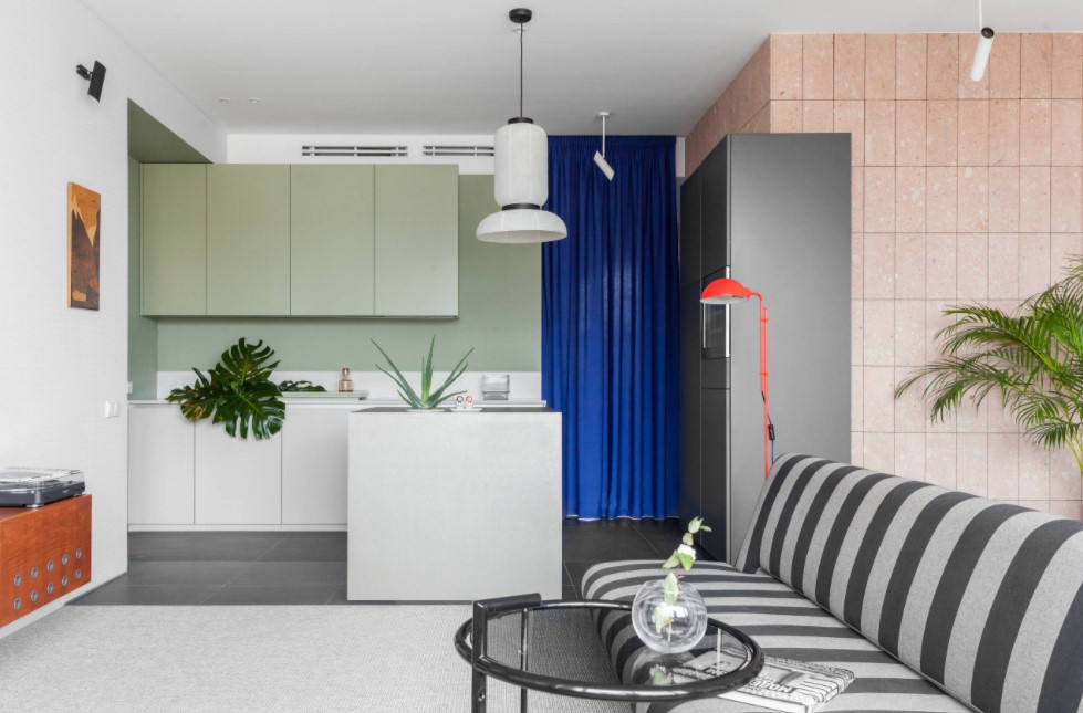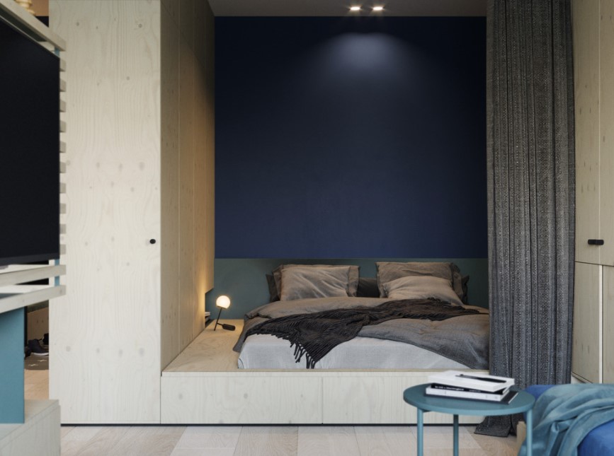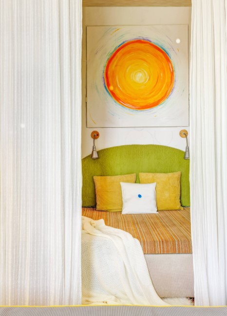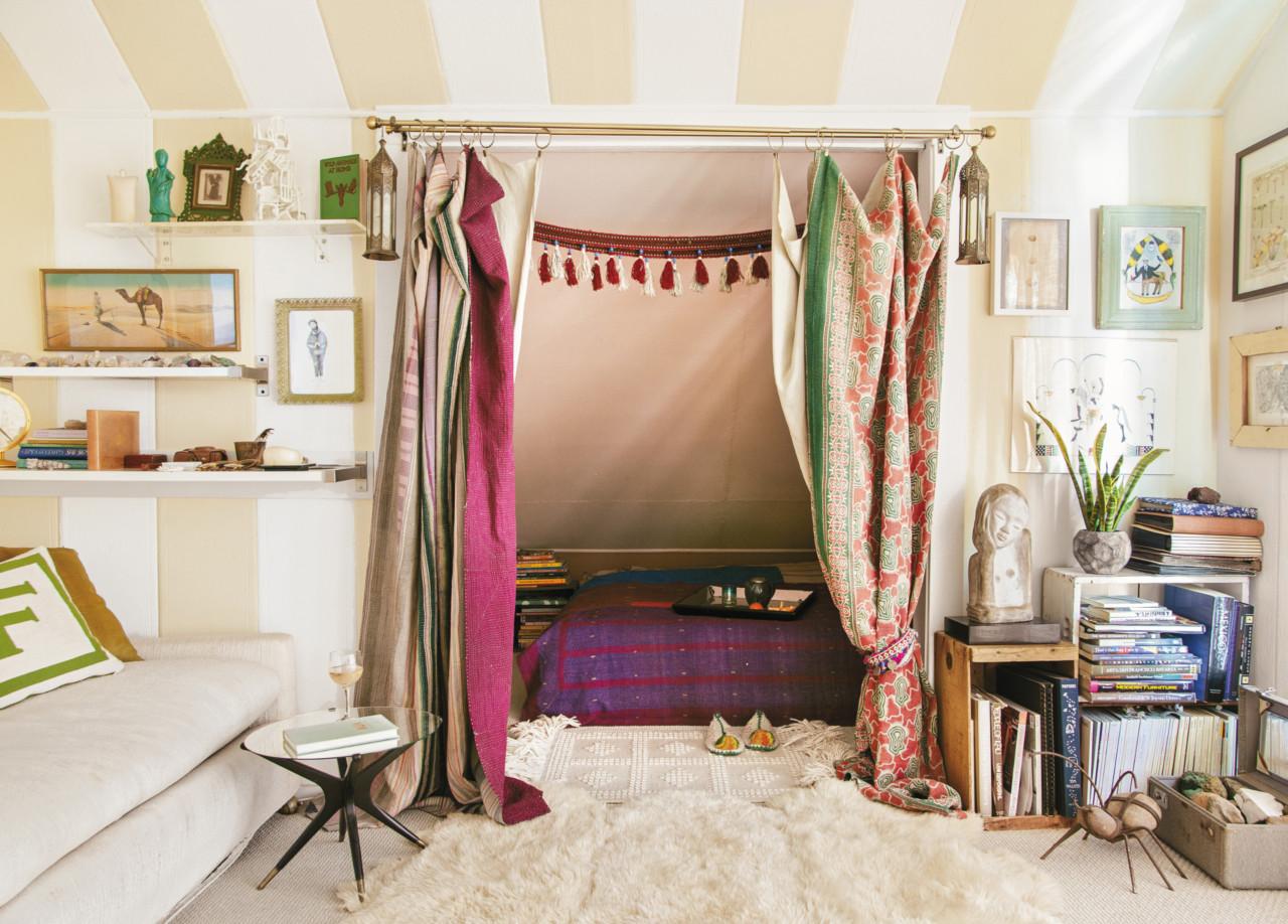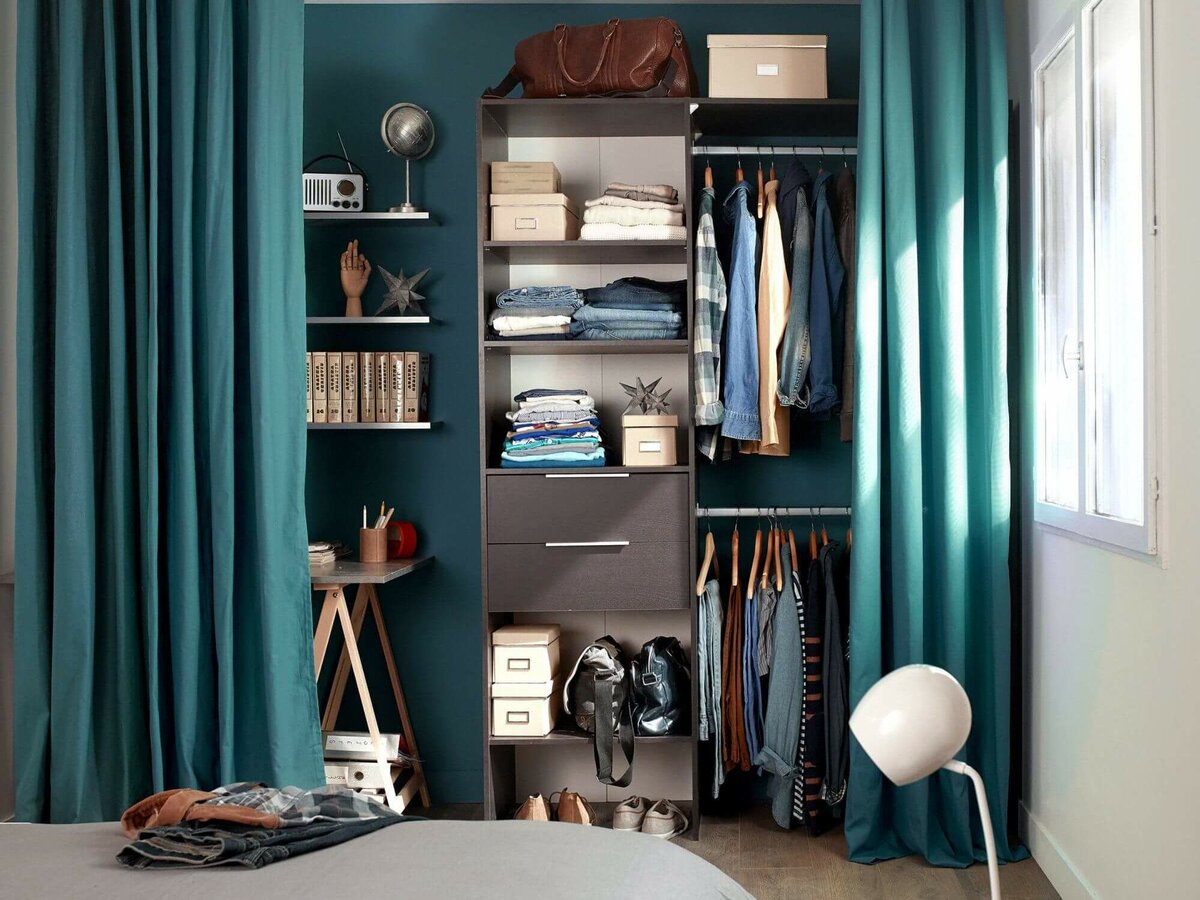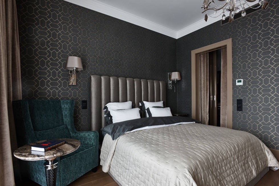 Нестандартное, но очень интересное решение предполагает замену двери на текстильное полотно. Такой креативный и весьма привлекательный дизайнерский ход заметно экономит пространство, абсолютно бесшумно и безопасно функционирует, что очень актуально для спален и детских комнат.