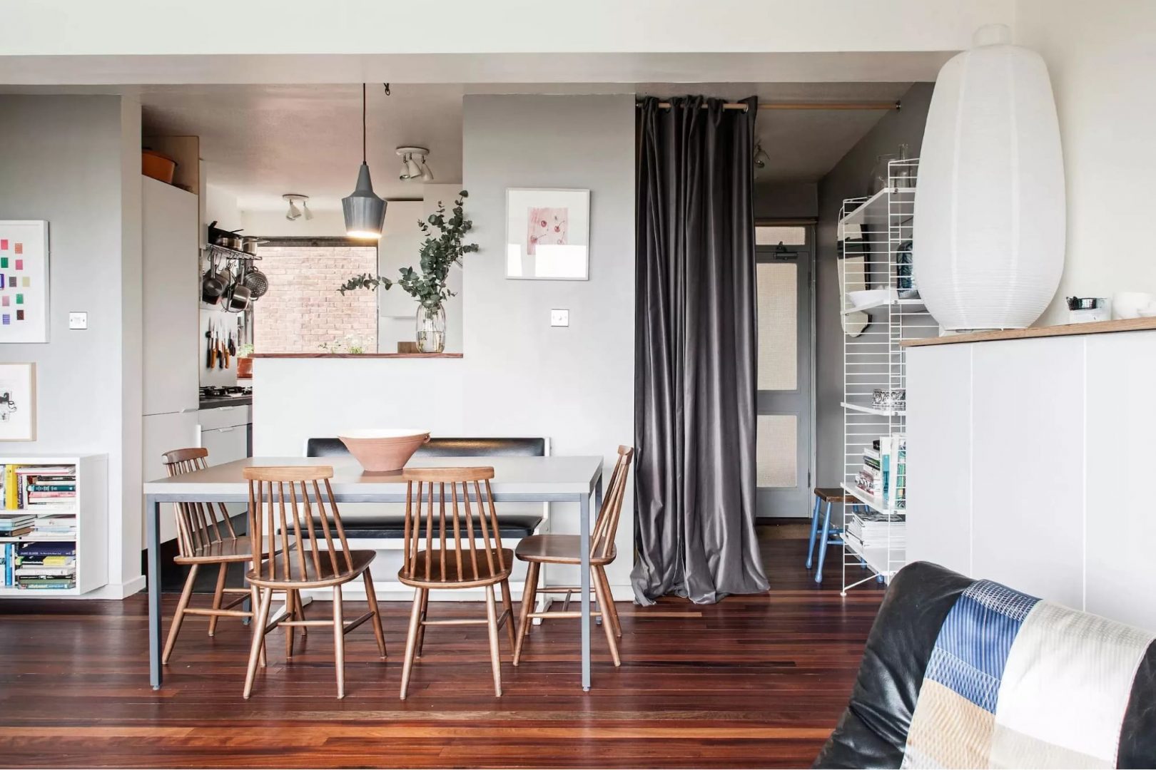 Занавески на дверях были особенно популярны в советские времена. Сегодня это не такой трендовый дизайнерский прием, однако, в некоторых случаях современная обновленная версия оформления дверного проема шторами придется очень кстати.