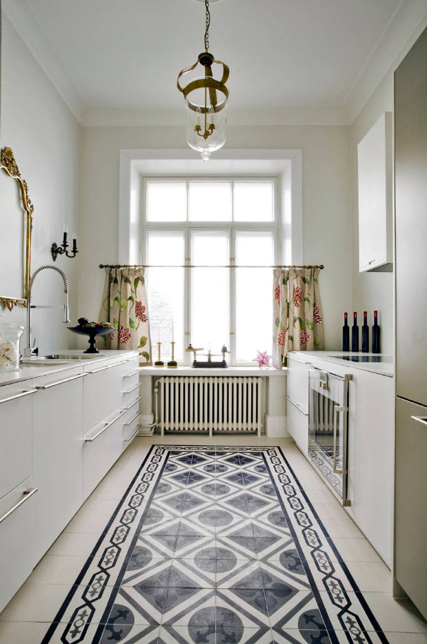 Такие шторки или занавеси и правда можно было встретить в интерьер кафе – ткань закрывает только нижнюю часть окна (половину или треть). С одной стороны – свет в окно проникает почти беспрепятственно и распространяется по помещению, с другой – пространство защищено от посторонних глаз. Если ваша кухня находится на первом этаже, такой способ драпировки окон может стать удачным вариантом. Тем более, что света в жилищах первого уровня часто не хватает, его закрывают деревья, кустарники, сооружения.