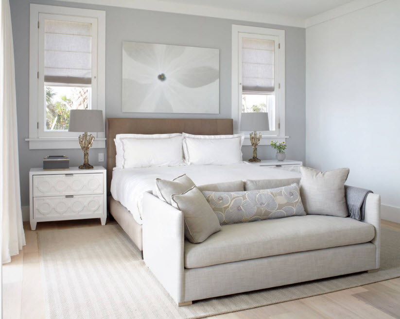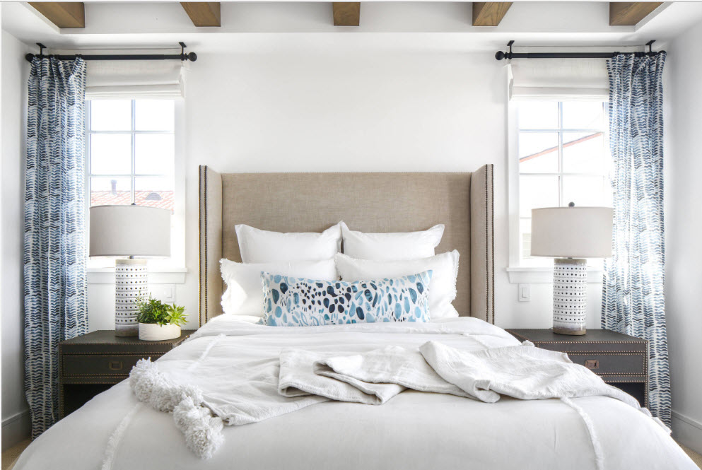 Современные дизайнеры, ратующие за стремление к практичному минимализму в оформлении жилых пространств, часто призывают нас отказаться от текстиля на окнах вовсе или свести это оформление к минимуму – легких занавесок. Но, российские владельцы квартир, да и частных домов, прекрасно понимают, что в интерьере спальни сложно обойтись без штор для окон. Текстиль оконных проемов не только защищает помещение от ярких солнечных лучей днем и света фонарей вечером, но и становится преградой для посторонних глаз, ведь расположение окон относительно улицы может быть разным.