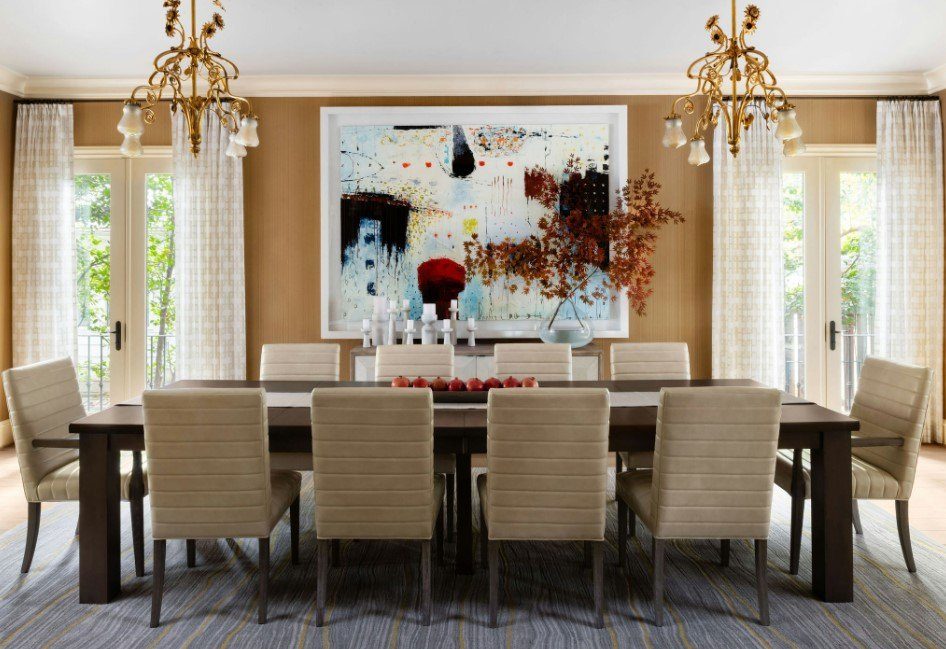 В интерьер можно использовать несколько однотонных, но при этом разных по цвету полотен. Например, белый и бирюзовый, бежевый и коричневый, горчичный и голубой.