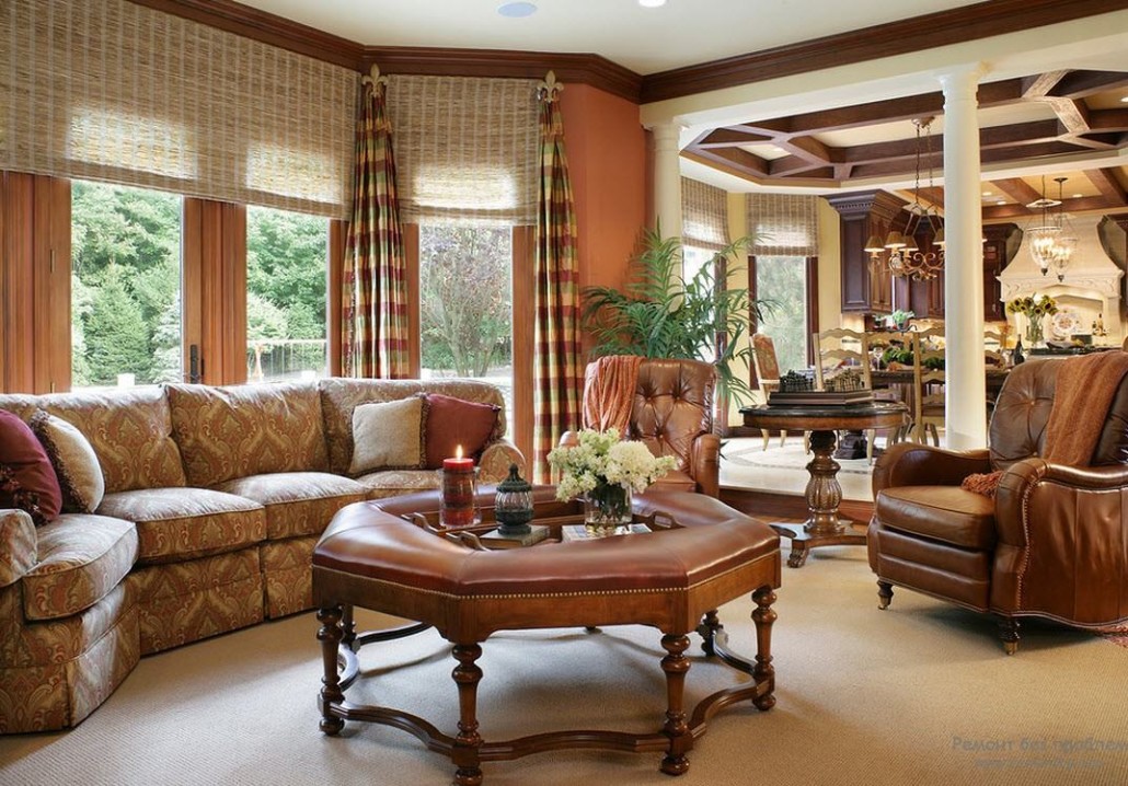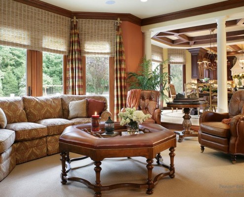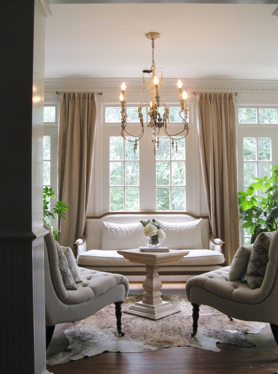 В виде органичного дополнения к таким видам интерьера выступает правильно подобранный текстиль. Создание глубоко продуманного интерьера гостиной требует особого внимания к естественному освещению. Декорирование источника естественного освещения – окна, придает интерьеру гостиной особую утонченность и завершенность.