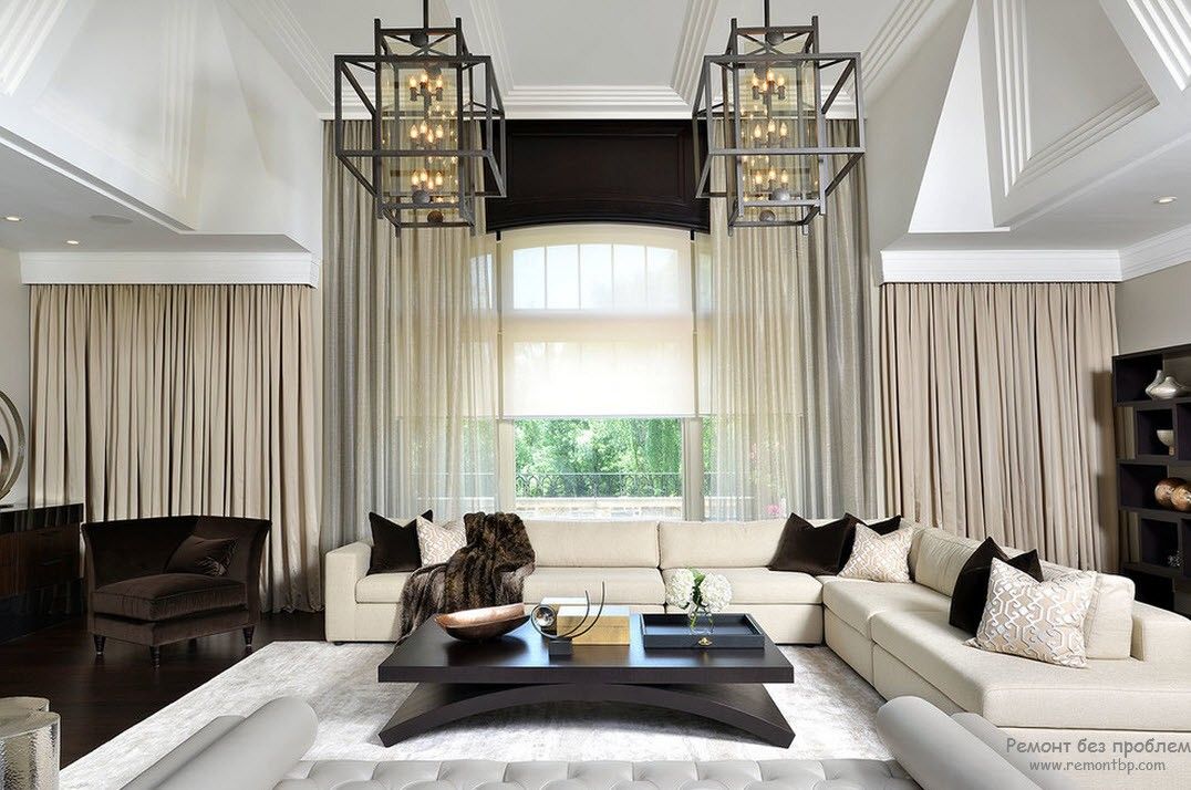 В перечне всевозможных приемов для оживления интерьера гостиной, самый актуальный способ – использование штор. Такой элемент дополнит любой из существующих видов интерьера и привнесет в композицию обязательный акцент, отличающий гостиную от других комнат.