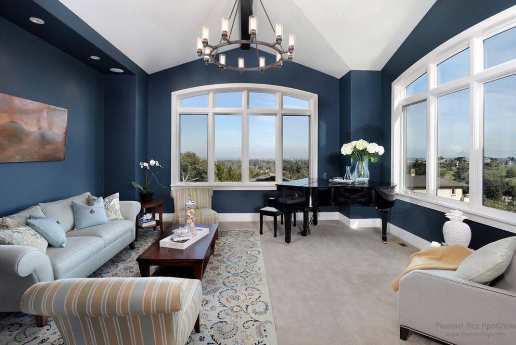 Но, в принципе, синий цвет и его оттенки хорошо подходят любой комнате, главное, правильно выбрать тон и подобрать сочетание с другими цветами.