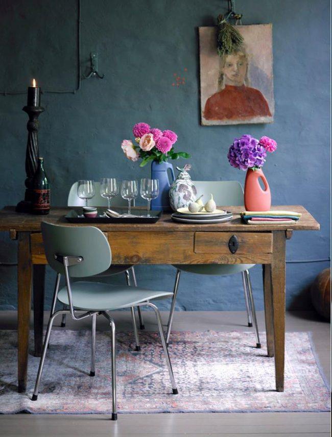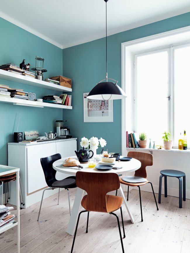 обилие цвета подойдет для комнат, где окна выходят на солнечную сторону. Таким образом создается ощущение прохлады, а для жарких помещений это очень актуально.