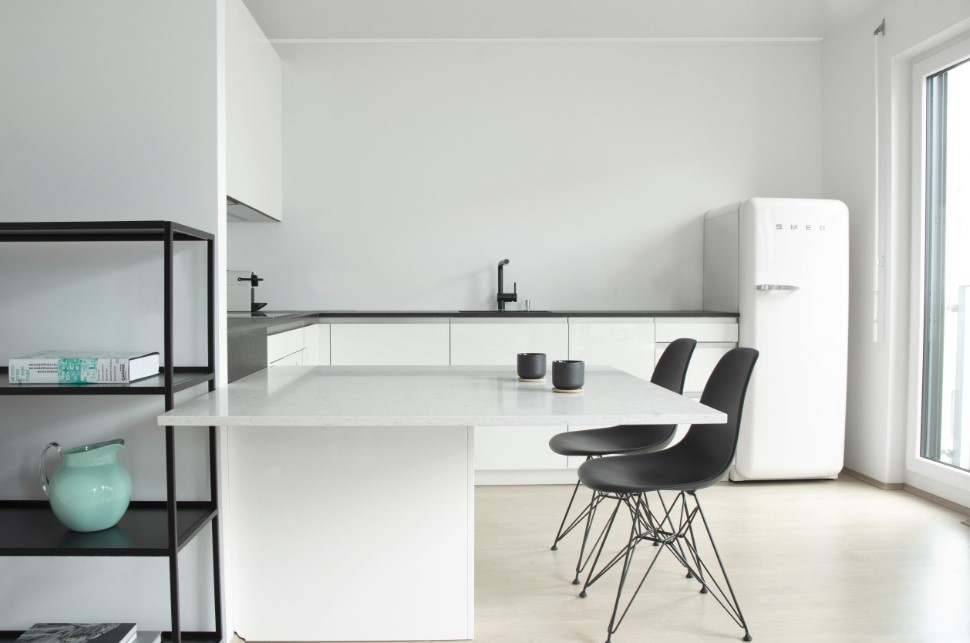 Считается, что абсолютно белый сканди или дизайн исключительно в светлых тонах больше не в моде. Его дополняют яркими пятнами в соответствии с сезонными веяниями. В этом году для северного интерьера лучше использовать пастельную гамму, как в мягких, так и прохладных тонах. А вот акцентировать внимание стоит свойственными стилю 80-х цветами. Допустимы даже детали неоновых расцветок.