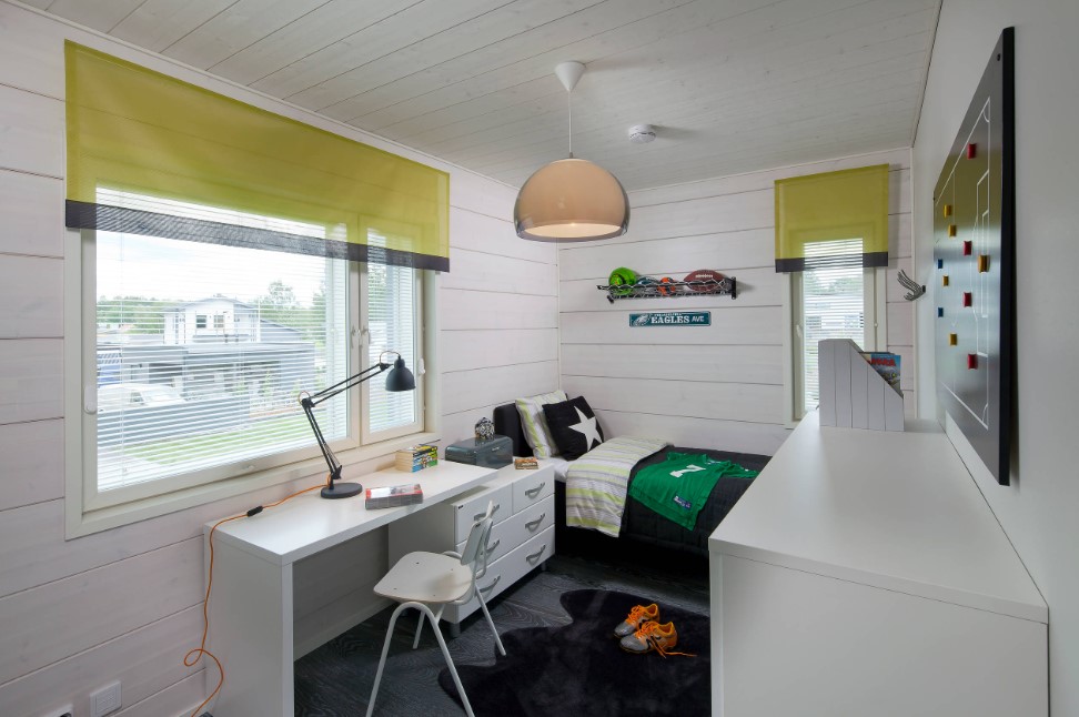 А осовремененной версией скандинавского считается New Nordic стиль. Это еще более просторное оформление и использование более насыщенных цветов. Древесина для пола применяется светлая, а для мебели – яркая и контрастная. Допустимо использовать больше аксессуаров, плетеного декора, в том числе подушек и ковров. Дизайн считается самым популярным видом сканди на сегодняшний день.