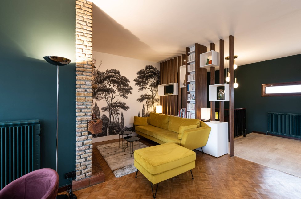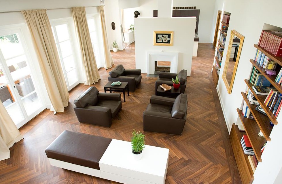 Если пространство совсем ограничено, то есть другой вариант – разместить в нем встроенный удобный и очень практичный стеллаж. В стеллаже встроенного типа можно удобно разместить декорации, цветы, домашнюю библиотеку. Можно поставить такой сквозной стеллаж вдоль большой стены, или же под лестницей. Полки такого стеллажа могут быть различной глубины и даже размера. Все зависит от потребностей в интерьере. Такой встроенный экземпляр подойдет не для любого стиля домашнего интерьера, но будет очень органичен в стиле кантри, в стиле хай-тек, а также подойдет для помещений, имеющих мало свободного места.