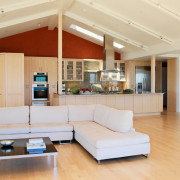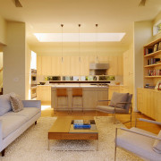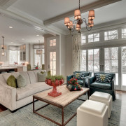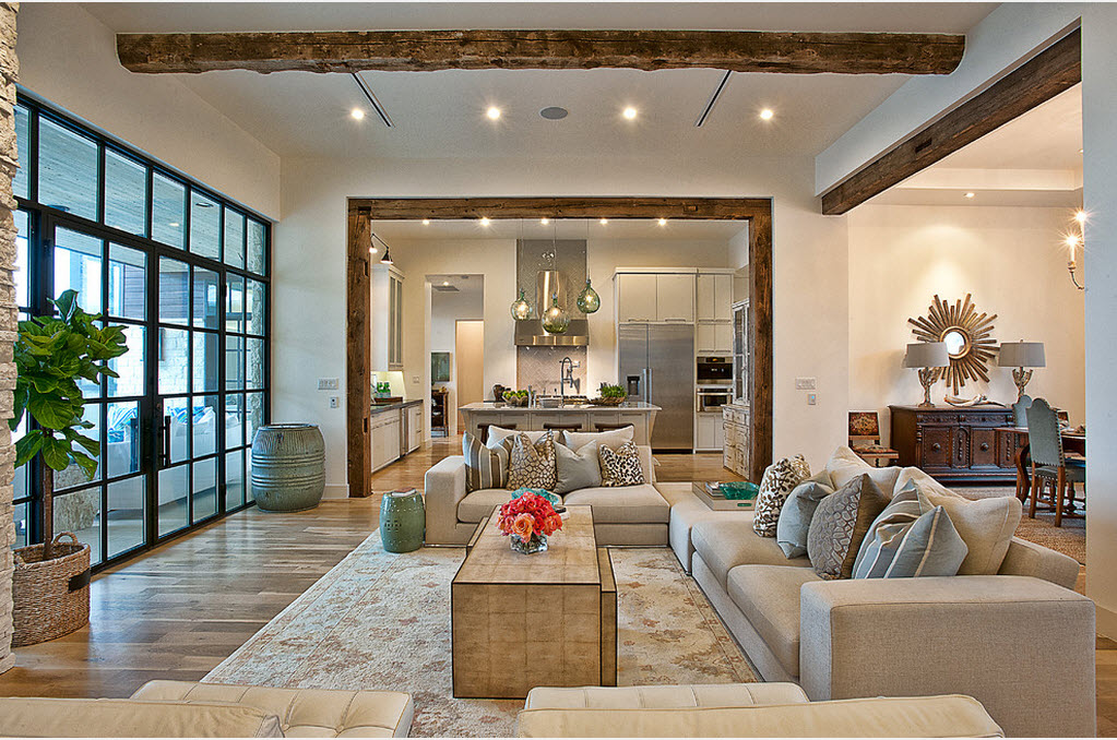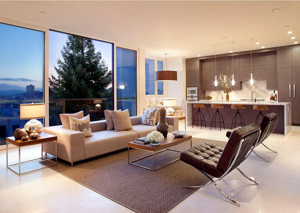 2. Шикарные трехкомнатные или двухкомнатные квартиры, помпезные коттеджи и загородные дома. Здесь идея совмещения пространств – исключительно вкусовые предпочтения самих владельцев, стремление к широким просторам и свободе перемещения;