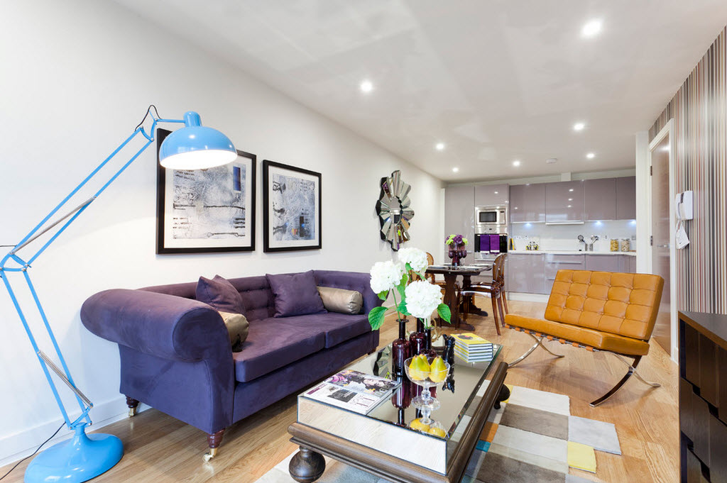 1. Однокомнатные малогабаритные студийные квартирки, где в интерьере комнаты нет ничего лишнего, а только необходимые для жизни предметы;