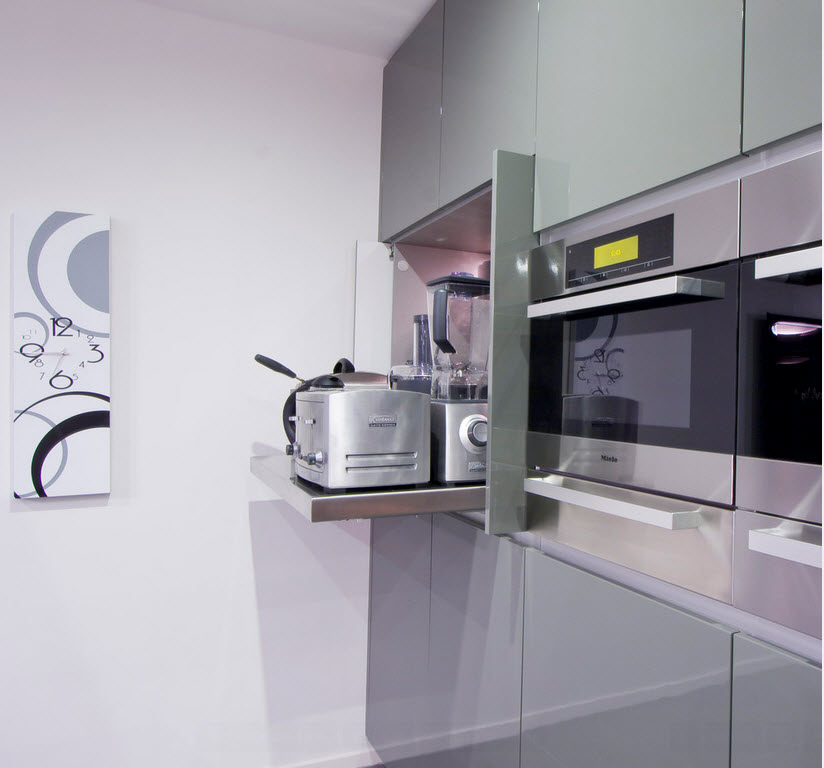 Основной момент, на который нужно обращать внимание, покупая бытовую технику для открытого пространства – максимальная ее бесшумность. Ведь мало кому понравится постоянно вздрагивать от внезапного гула холодильника или слушать громкую работу стиральной машинки. Обратитесь к консультантам в магазине, которые подробно расскажут обо всех характеристиках бытового прибора, в том числе и об уровне шума. Как альтернативный вариант, вы можете самостоятельно установить кухонную технику в шкафчики, тем самым уменьшив громкость и вибрацию работающего агрегата.