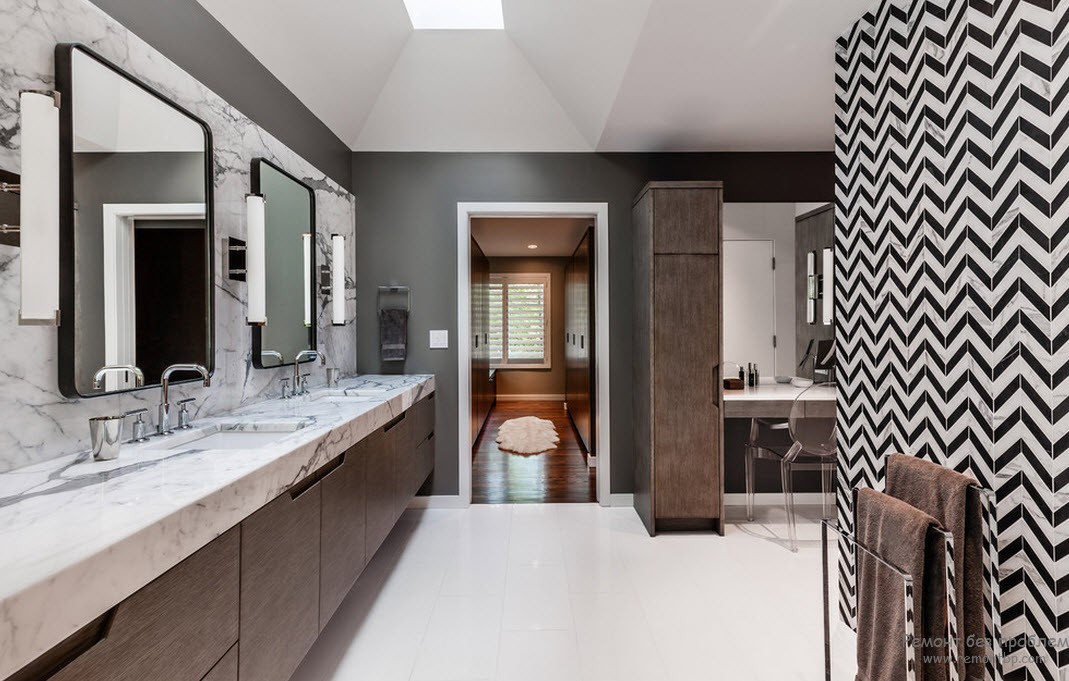 Стильное и вечное сочетание черного с белым в интерьере ванной комнаты