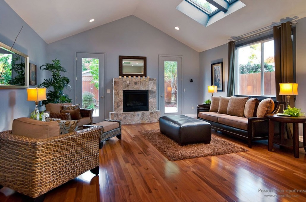 Здесь не будет никакой дисгармонии, независимо от того, какой оттенок оранжевого будет выбран. Считается удачным использование шоколадного плинтуса и если есть камин, то его можно сделать в таком же оттенке и все это на фоне оранжевого пола в оттененном варианте. К такому союзу хорошо подходят черные акценты, поскольку оранжевый фон, например, прекрасно смягчил бы оба цвета и выгодно их подчеркнул.