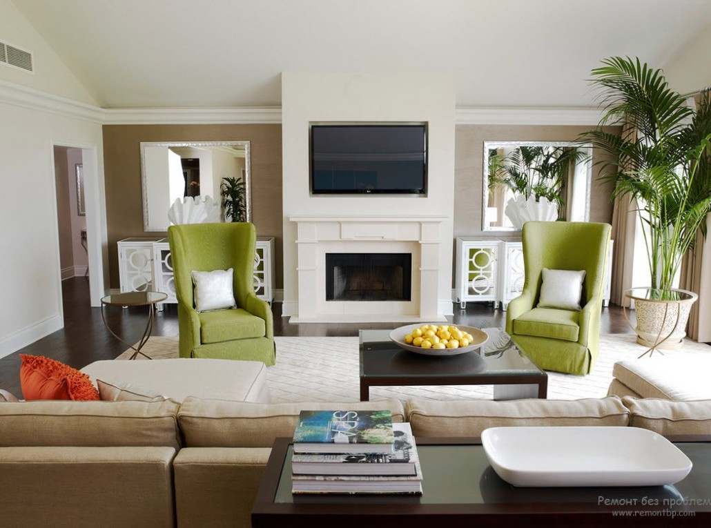 Но есть одно небольшое правило: если речь идет о коричнево-зеленом интерьере, где кроме этих двух цветов других нет, то в отношении зеленого лучше выбирать яблочно-зеленый оттенок, здесь он будет более уместен.