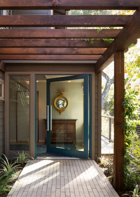 Уже у входа в частный дом становится понятно, что при его оформлении дизайнерами и хозяевами была проведена немалая работа, что к выбору цветовых сочетаний был выработан особый подход – использование союзов оттенков с различной «цветовой температурой». Прохладные цвета соседствуют с теплыми тонами и создают гармоничные альянсы.