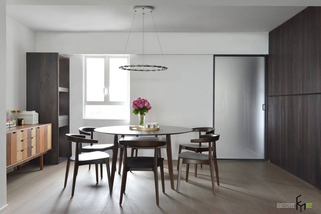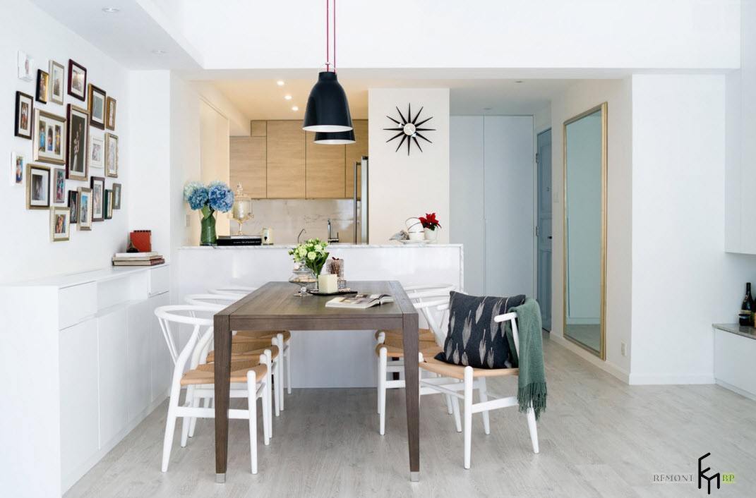 Простор и масштаб, светлая отделка, минимум декора и аксессуаров, простая, но прочная и надежная мебель – все для обеденной зоны в минималистской стилистике.