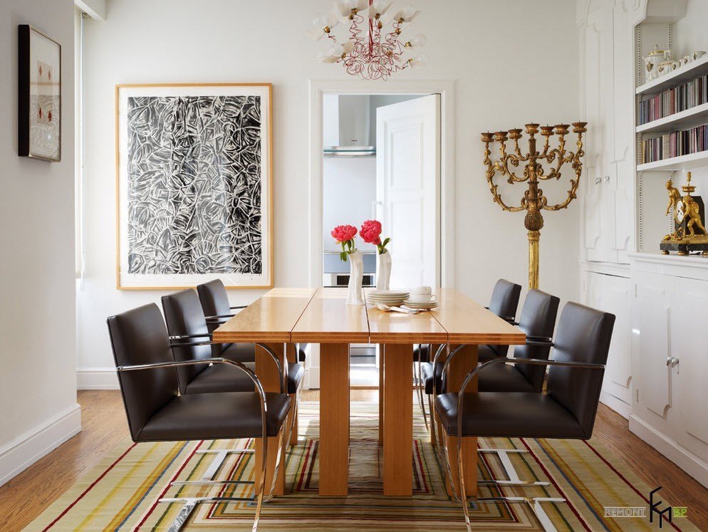 Рассмотрим на конкретных примерах, какие бывают обеденные столы, из чего изготавливаются, для каких стилистических течений предназначены и каким образом сочетаются с остальной меблировкой помещения.