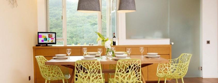 Когда у вас есть настолько необычный стол с оригинальной конструкцией, можно не беспокоиться о нетривиальности всей обстановки столовой. Дизайнерское исполнение обеденной группы будет приковывать внимание, а нейтральная отделка поверхностей комнаты станет для этого отличным фоном.