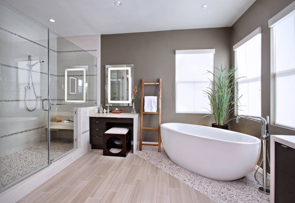 Ремонт в ванной комнате – особенное «удовольствие» для наших соотечественников, долгое время вынужденных выкраивать каждый квадратный сантиметр площади в квартирах стандартной планировки прошлого столетия. Именно недостаток полезного пространства подталкивал россиян на совмещение ванной комнаты с санузлом. Популярность этого конструктивного приема актуальна и в наши дни, ведь подобное совмещение позволяет не только увеличить количество квадратных метров утилитарного помещения, но и создать принципиально новую планировку общей для всей семьи комнаты, в которой выполняет невероятно большое количество функций.