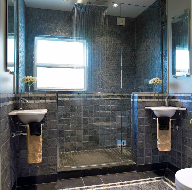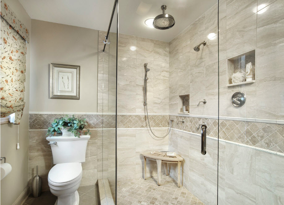 Если вы планируете комбинирование керамической плитки с другими видами отделочных материалов (покраски, декоративной штукатурки, акрила или натурального камня), необходимо обязательно установить достаточно мощную систему принудительной вентиляции. Также необходимо предварительно позаботиться о гидроизоляции утилитарного помещения.
