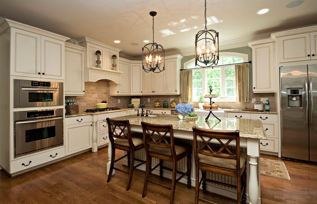 Определившись, как будет выполнено зонирование большой кухни, вы задумаетесь, что же далее. А далее будет логично подумать, в каком стиле интерьера оформить кухню и чем это все реализовать: материалы, цвет, мебель.