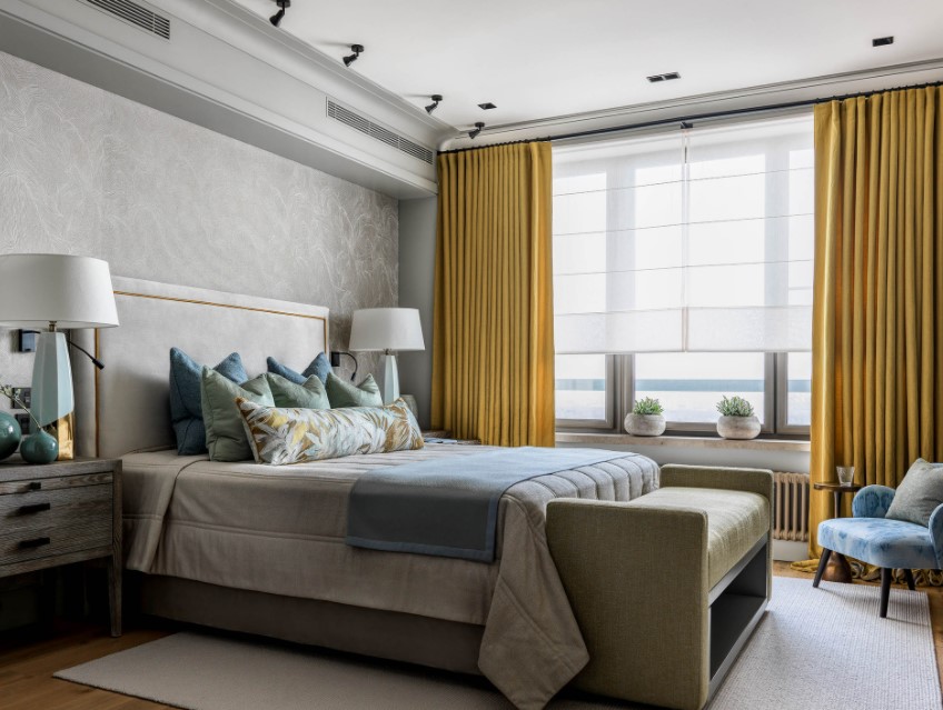 Совет от опытных дизайнеров: если хочется освежить спальный интерьер, допустимо использовать и красочные, яркие цвета в акцентах. Это могут быть красивые постельные принадлежности, шторы, или декоративные подушки на постели.