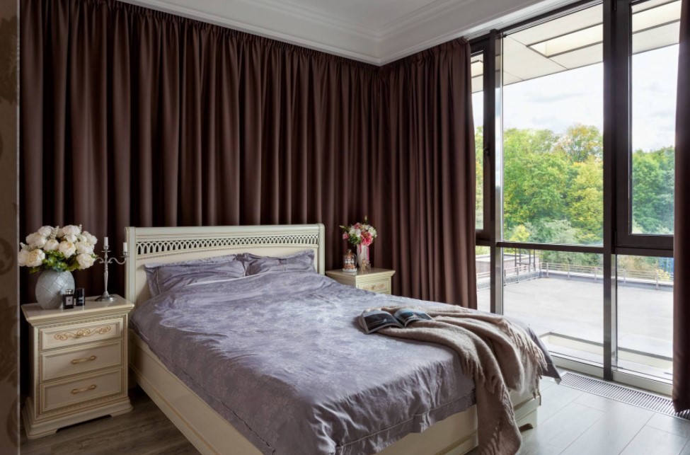 Для спальни в данном стиле подходит роскошный декор, красивая под старину изысканная мебель – резная, с красивой и дорогой фурнитурой, антикварные предметы меблировки. Что касается материалов, то для классической спальни в 2024 году используются: натуральное дерево дорогих сортов, стекло, кованное обработанное железо. Для текстиля используются шелка, парча, дорогая бархатная драпировка.
