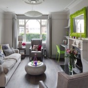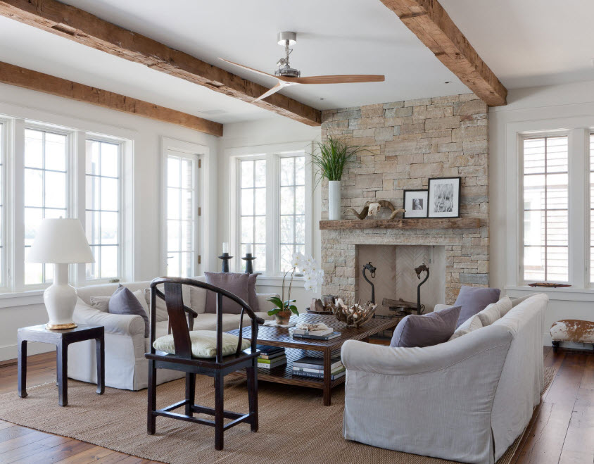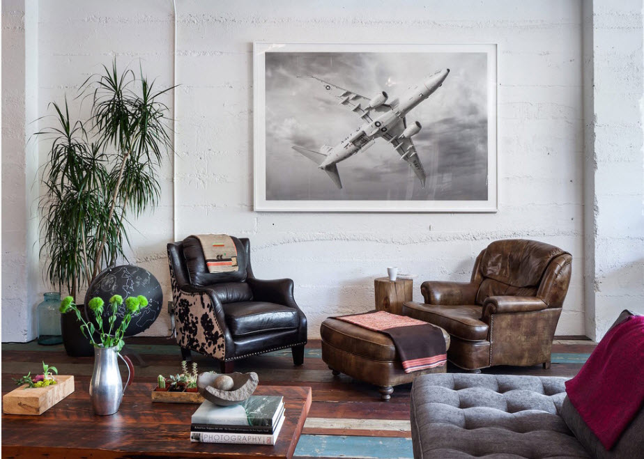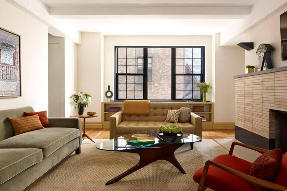 Ретро-стиль получил очередное воплощение в рамках концепции современной стилистики. Старинный предмет интерьера органично вписывается в минималистское оформление гостиной. Отреставрированный бабушкин диван или кофейный столик на удивление органично смотрится на фоне простых бетонных стен или отделки, стилизованной под бетон.