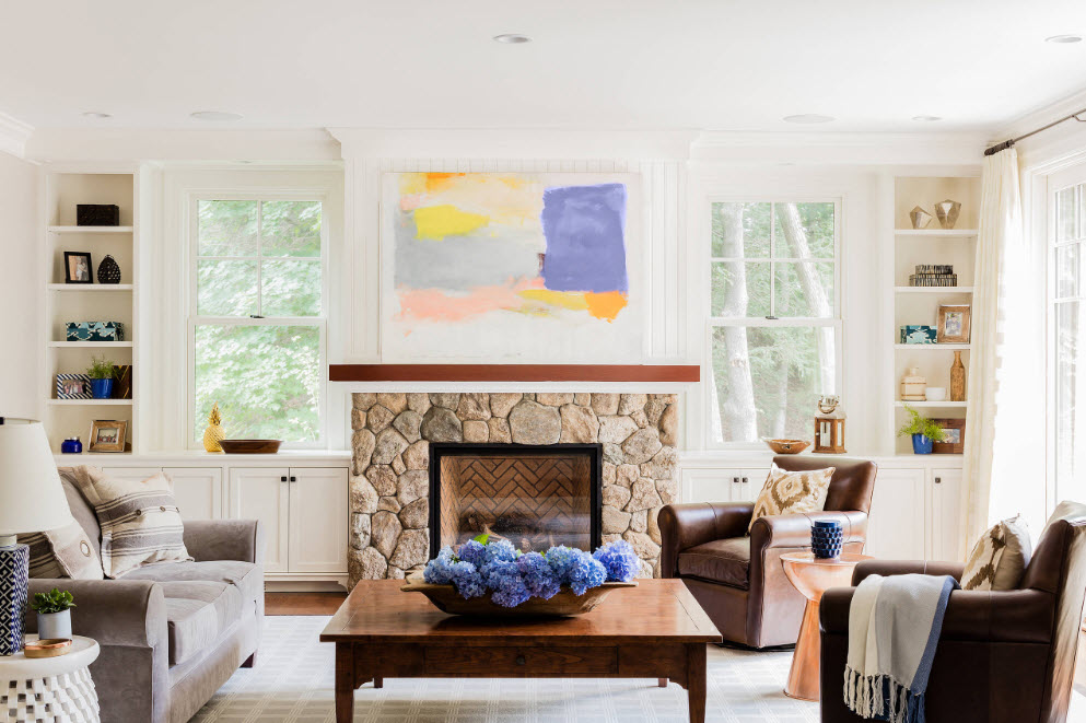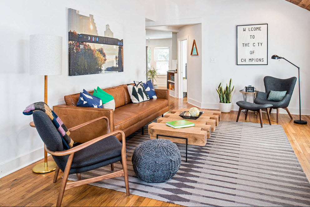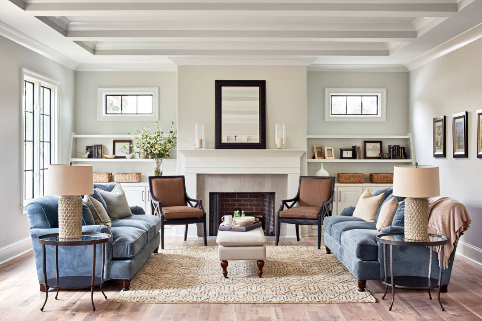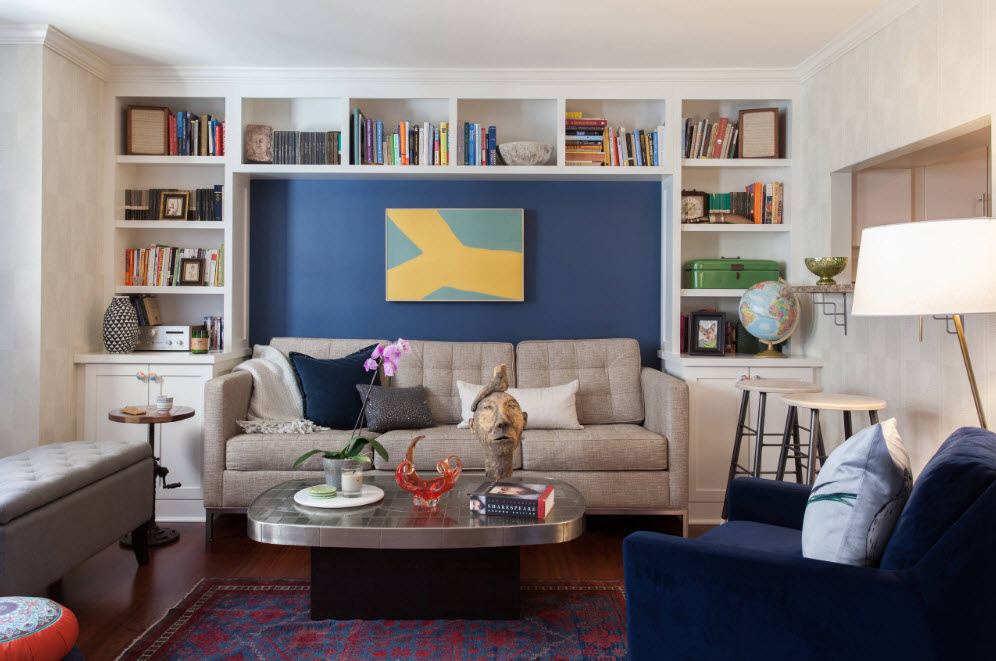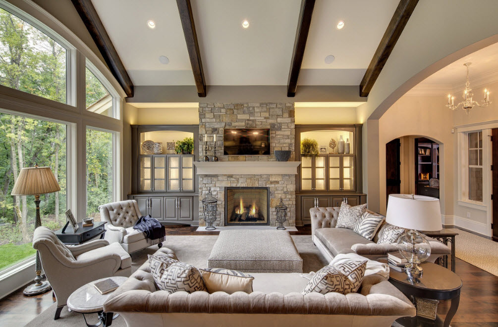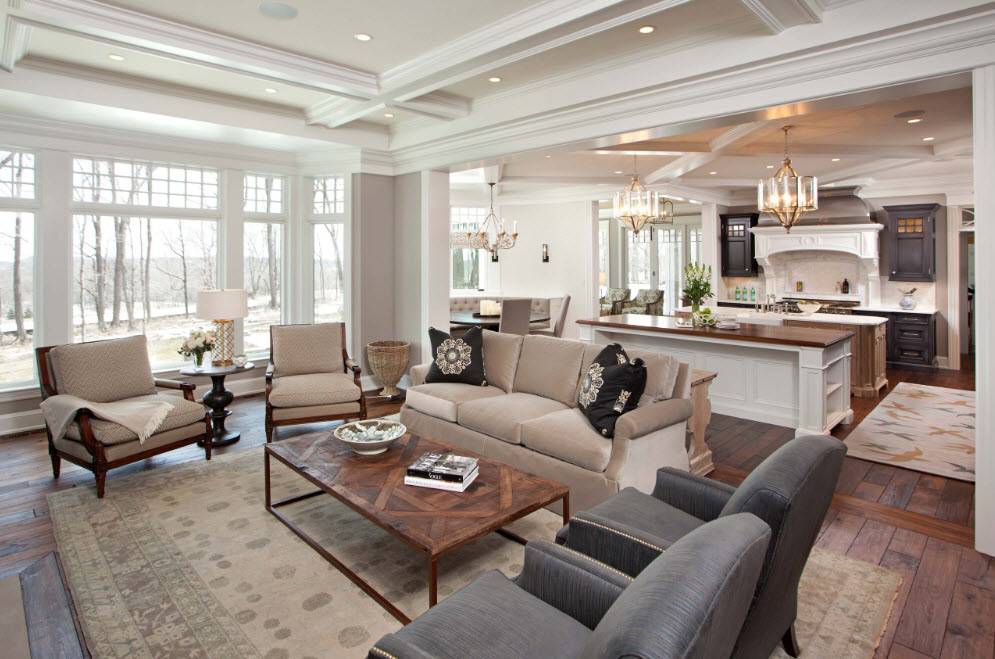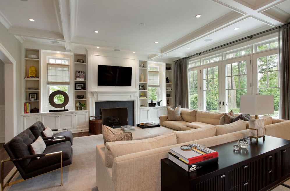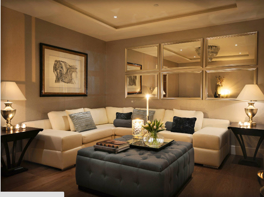 Основным предметом мебели современной гостиной выступает диван. Вместительный и трансформируемый, со съемными чехлами для быстрой и простой стирки, он представляет собой удобный, практичный и комфортабельный остров для создания зоны отдыха. Часто такой предмет интерьера дополняется лишь кофейным столиком (в России его чаще называют журнальным). Большой угловой диван является самодостаточной единицей интерьер, не нуждающейся в поддержке креслами или оттоманками. Но если вам необходимо организовать уголок для чтения в рамках гостиной, то без удобного кресла и напольного торшера (лампы на небольшом столике-подставке) вам не обойтись.