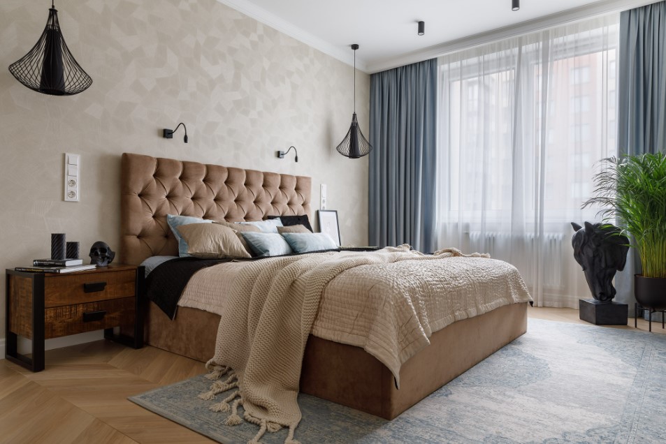 Применяя вышеназванные цвета, выйдет избежать монотонности и тоски в декоре. Эти цвета не давят, не раздражают, а наоборот, дарят расслабление и релакс. Неплохо сработает идея стиля «тон в тон» – особенно хорошо при декорировании комнаты, когда в ход идет серый цвет. При этом нужно помнить, что нельзя сейчас оформлять в спальню в каком-либо одном цвете или тоне.
