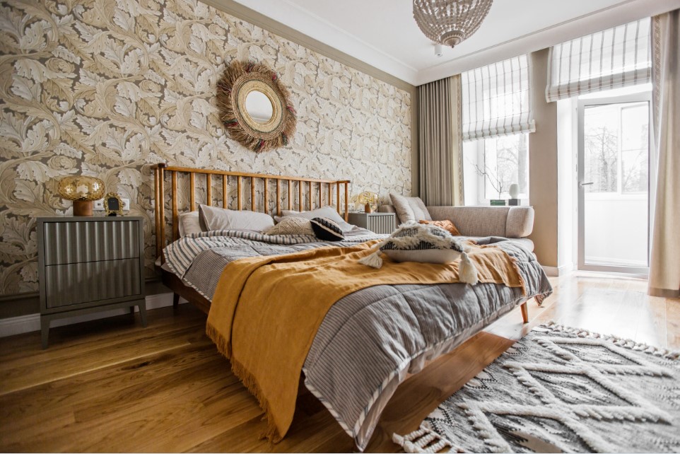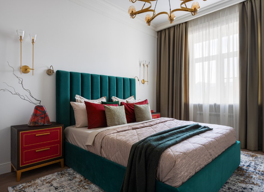 Стиль богема, марокканский стиль, гламурный – они очень хорошо смотрятся в домашнем спальном интерьере, потому как позволяют использовать в качестве декора различные предметы ярких цветов, и разнообразные узоры для украшения помещения.