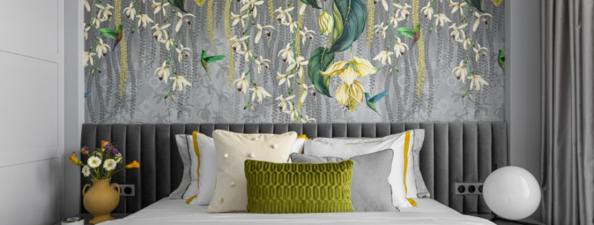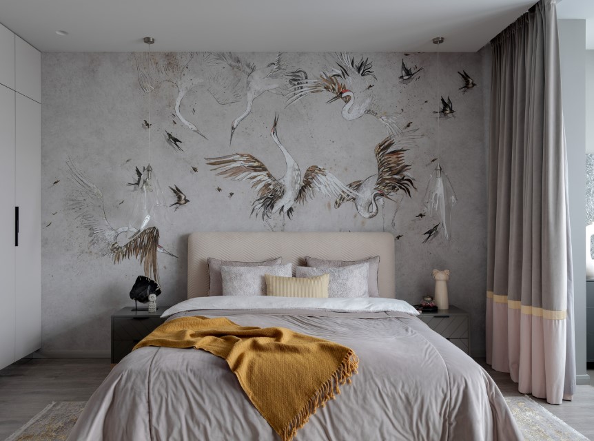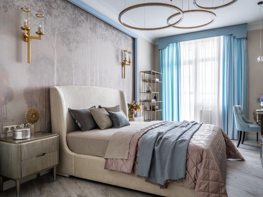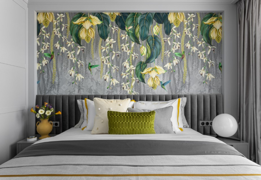 Не нравятся белые или молочные стены? Тогда лучшее решение – обои. Они помогут преобразить облик спальни, при этом придерживаясь какого-либо определенного стиля. В моде для женских спален – цветочные узоры, а также различные природные растительные мотивы в текстиле, декоре.