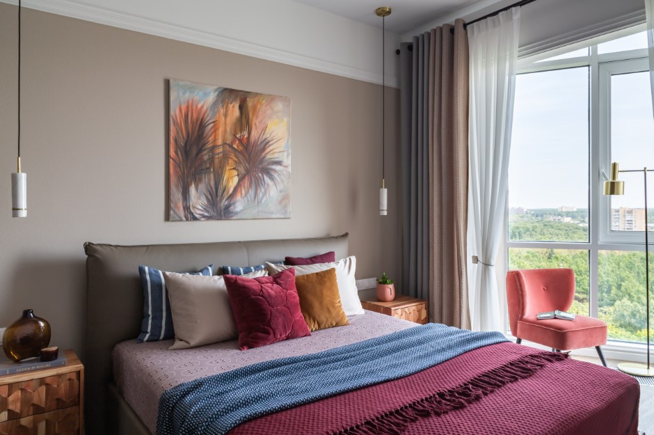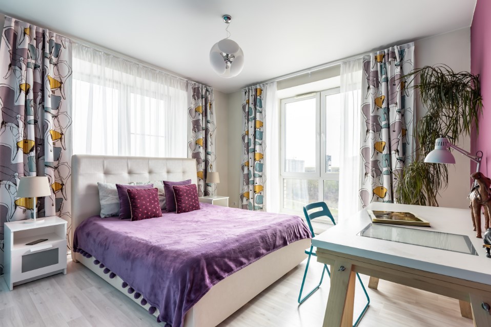 Никаких чисто фиолетовых, или чисто розовых спален! Это даже пошло, чем красиво. Цвета должны сочетаться, гармонировать, перекликаться. Тогда комната выйдет такой, как нужно.