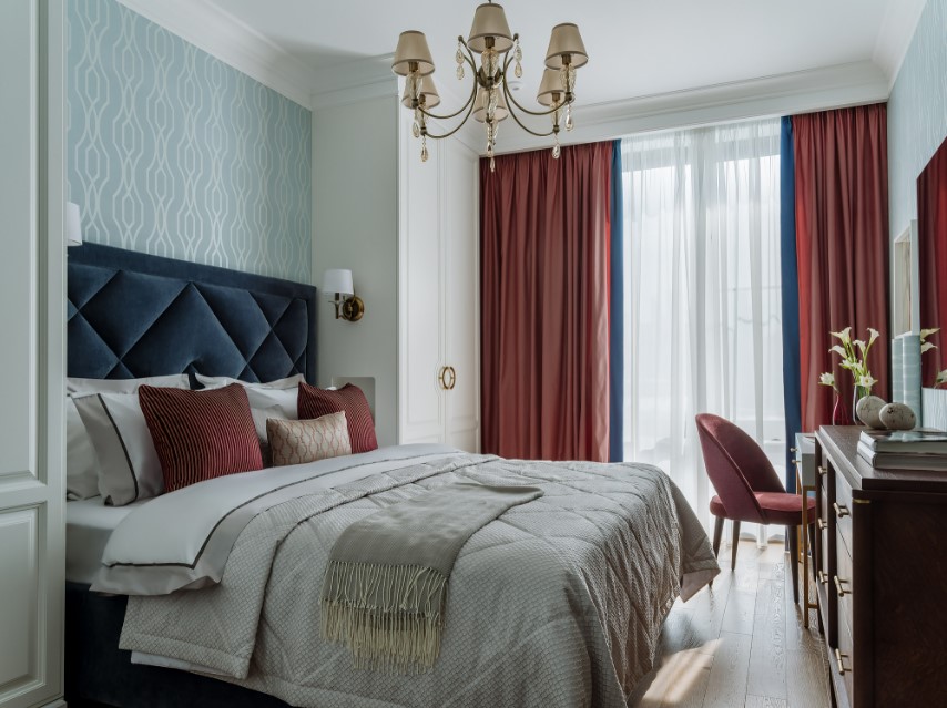 Стиль ампир подходит больше для женщин постарше, зрелых женщин, которые знают, чего именно хотят. Ампир – утонченная и яркая роскошь. Обилие золотого, красного, белого, синего, блестящих серебристых тонов. Мебель выбирается исключительно дорогая, из дорогих ценных пород дерева, по праву считающаяся антикварной, премиальной. Популярно для такого стиля – декорирование тканью, причем преимущественно дорогой. Это может быть шелк, бархат, атлас и т.д.